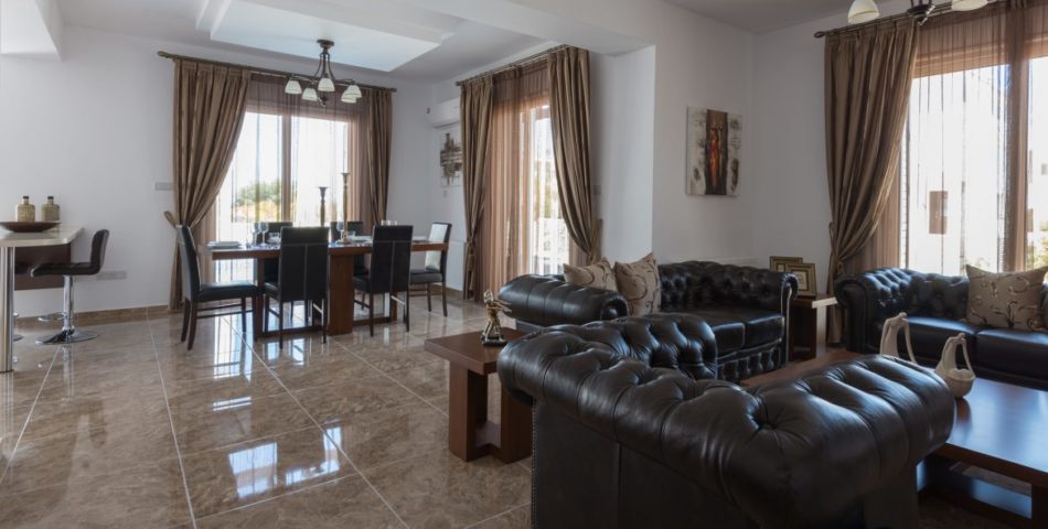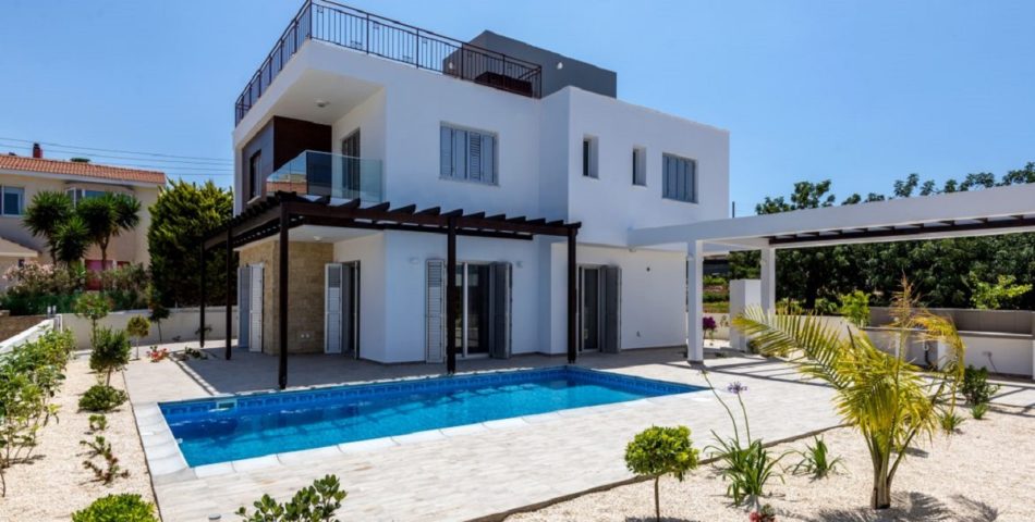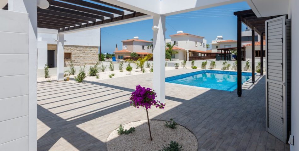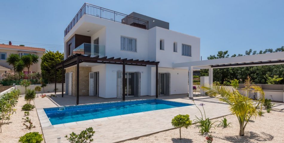 This Villa is a fabulous development with wonderful views of the coast. Ultra-modern living beckons, with the villas’ striking geometric design and the use of natural stone, wood and glass, creating bright, airy and elegant rooms.It is situated in a quiet and prestigious residential area close to fields and farmland, but just a 5 minute drive to Pafos.