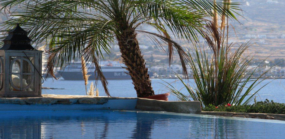 Overlooking the blue of the Aegean, the Marchelo Beach and Krios Bay, villa Paros is a charming private property located in a panoramic position, just a few minutes’ drive from the town of Paros.